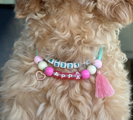Appa & Tails maakt handgemaakte halsbanden met naam voor honden — met liefde gemaakt, getest door kwispelende staarten. 💛