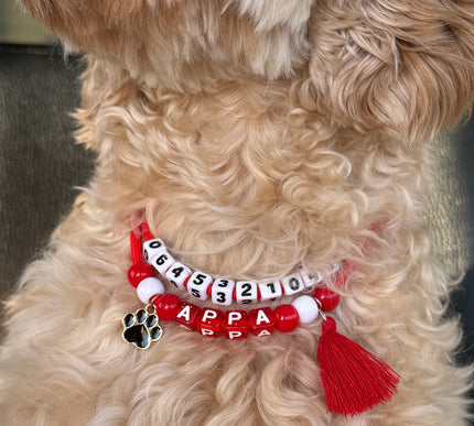 Appa & Tails maakt handgemaakte halsbanden met naam voor honden — met liefde gemaakt, getest door kwispelende staarten. 💛